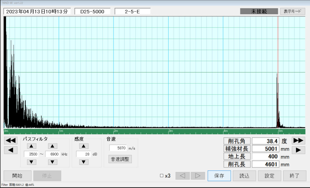 NND起動した後、弾性波を送受信させ反射エコーが確認・明瞭化しされたらデータの保存をおこないます。