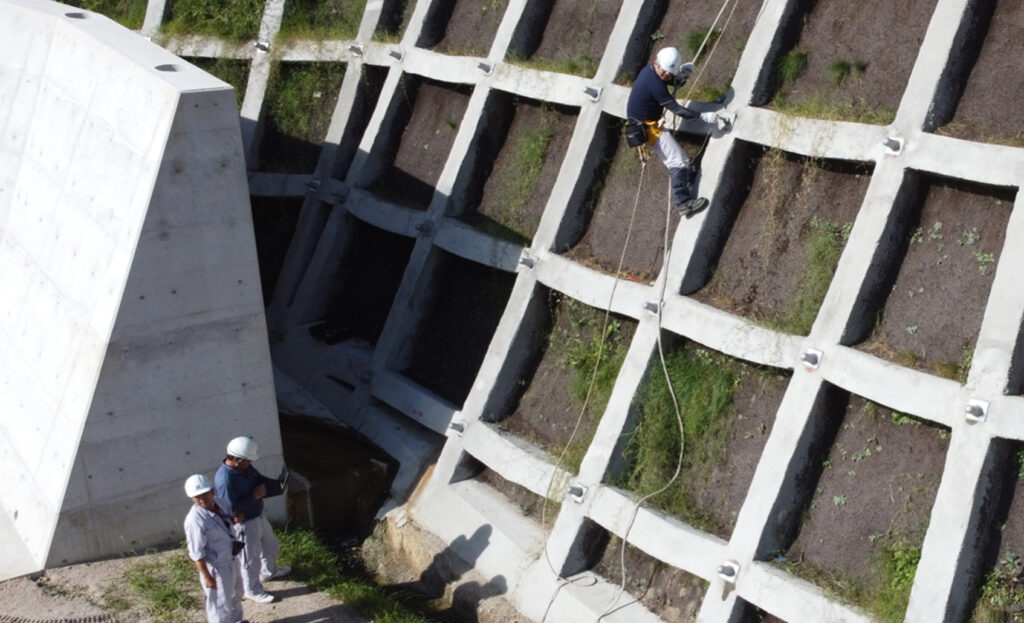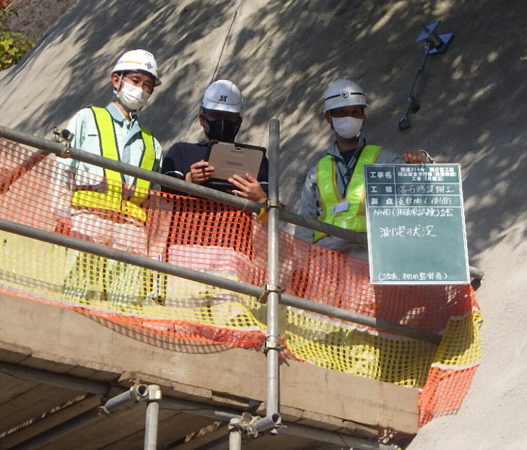 法面などロープ足場が必要な測定では、Wi-Fiによるワイヤレス操作機能が効果を発揮、危険個所での作業を大幅に軽減させます。